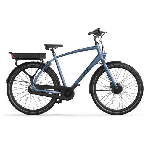 Cortina E-Tide elektrische herenfiets in framemaat 50 cm. Kleur: Jet Black Matte. Uitgerust met achter een Shimano Nexus 7-traps versnellingsnaaf en hydraulische schijfremmen voor en achter. Werkt met een SportDrive 36v systeem met voorwielmotor.